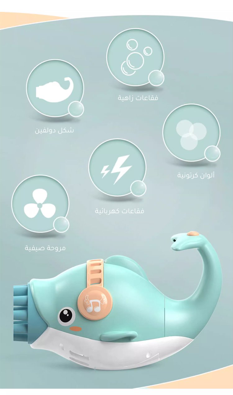 آلة الفقاعات الأوتوماتيكية على شكل الدلفين الكرتوني